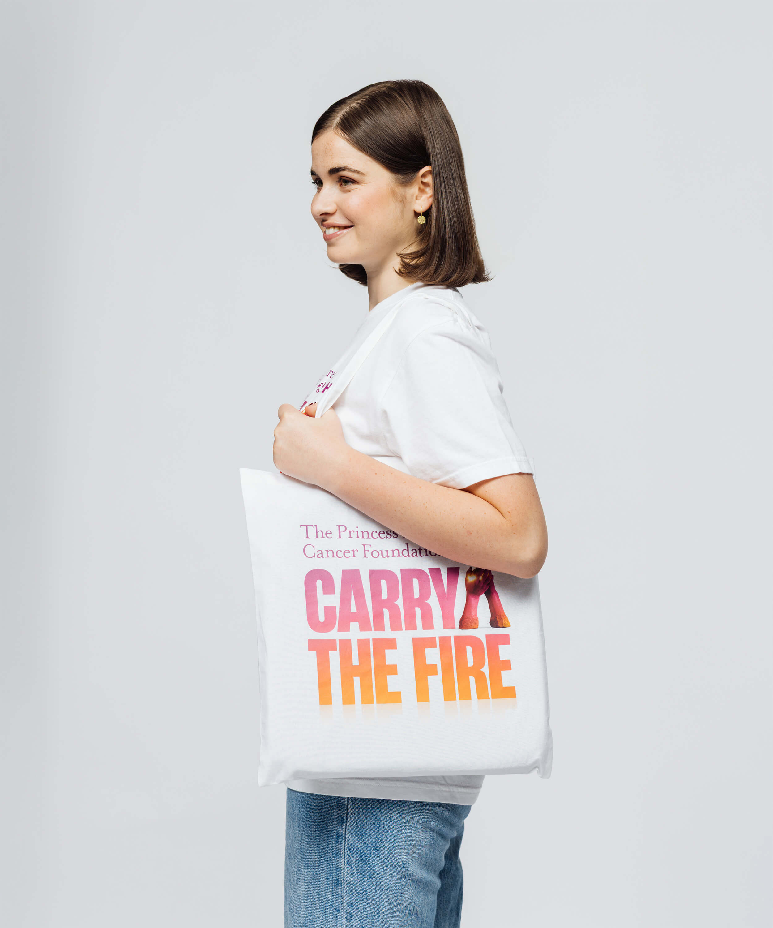 Carry your essentials while you Carry The Fire for a world free from the fear of cancer. This sturdy and durable tote bag is constructed with natural cotton canvas and built to hold everything from groceries and books, to your laptop and other essentials. Wherever you go, this tote bag is a daily reminder that small choices can carry big change.