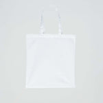 100% natural cotton canvas. 15” W x 16” H with 20” handles that are cross-stitched to the body of the tote for extra strength and durability. Machine wash in cold water and hang to dry.